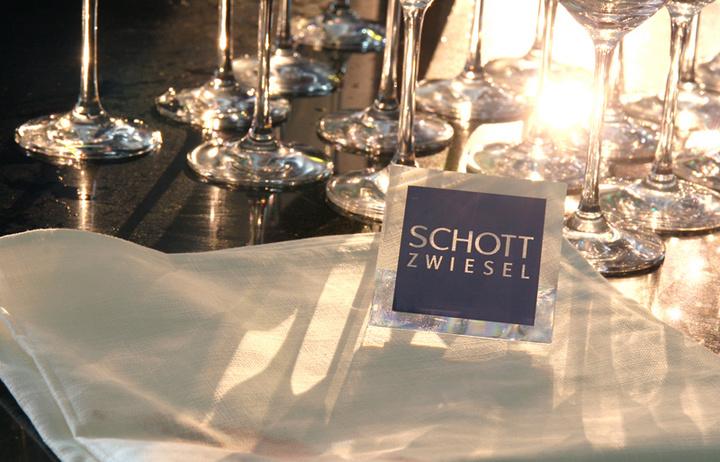 肖特酒具所有系列中最精致也是制作难度最大的莫过于手工水晶杯,每只杯子都由数个技师合作方可完成。五个技师为一组,“吹杯技师”和他的助手负责吹制杯体及杯茎上半部分, “高级制杯师”和他的两个助手负责杯茎及杯底的制作。整个手工制杯过程,大师只需徒手和简单的工具。长时间精益求精的训练,扎实的技术,过人的眼力,和谐的手眼配合是完成制杯工作的必要条件。操作流程平稳而娴熟,在炽热的熔炉前观看杯子的制作就像欣赏芭蕾舞剧一样。每一步的动作都精确无误,富有韵律。